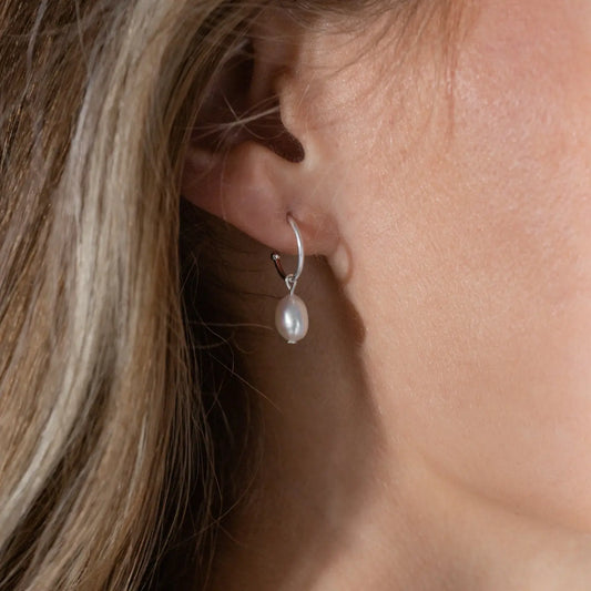 Silver Pearl Drop Studs