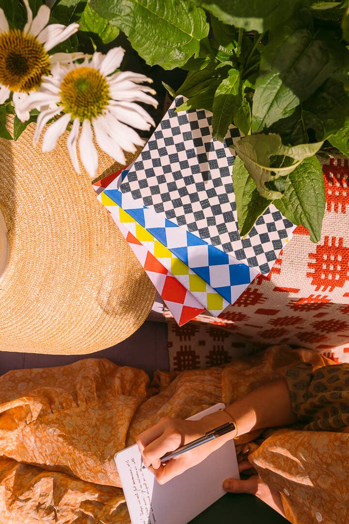 Celebrate colour and beautiful patterns with our A5 sketchbooks! This Sketchbook features a black and white chequered cover and has a contrasting colourful lime-green inside.