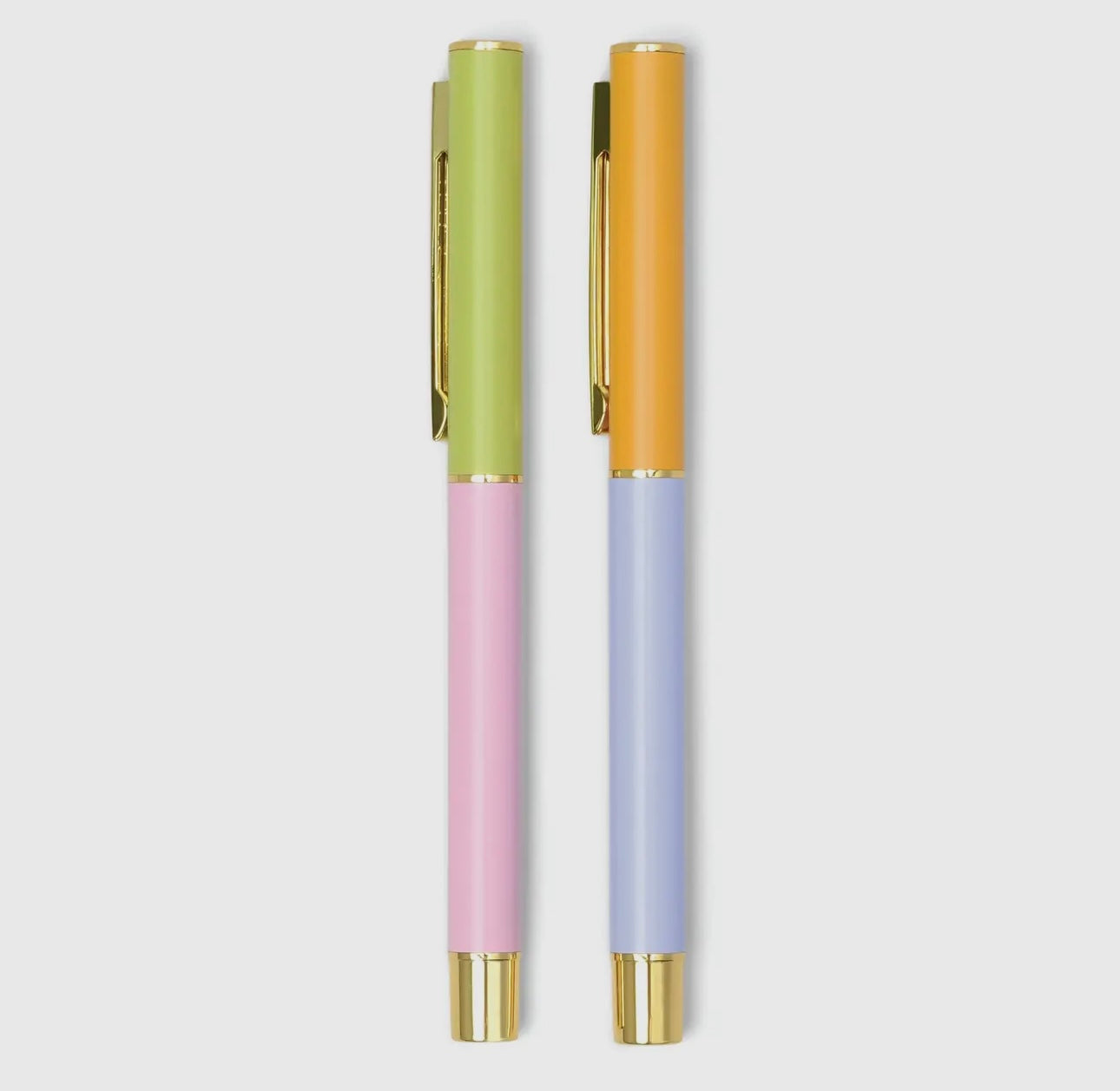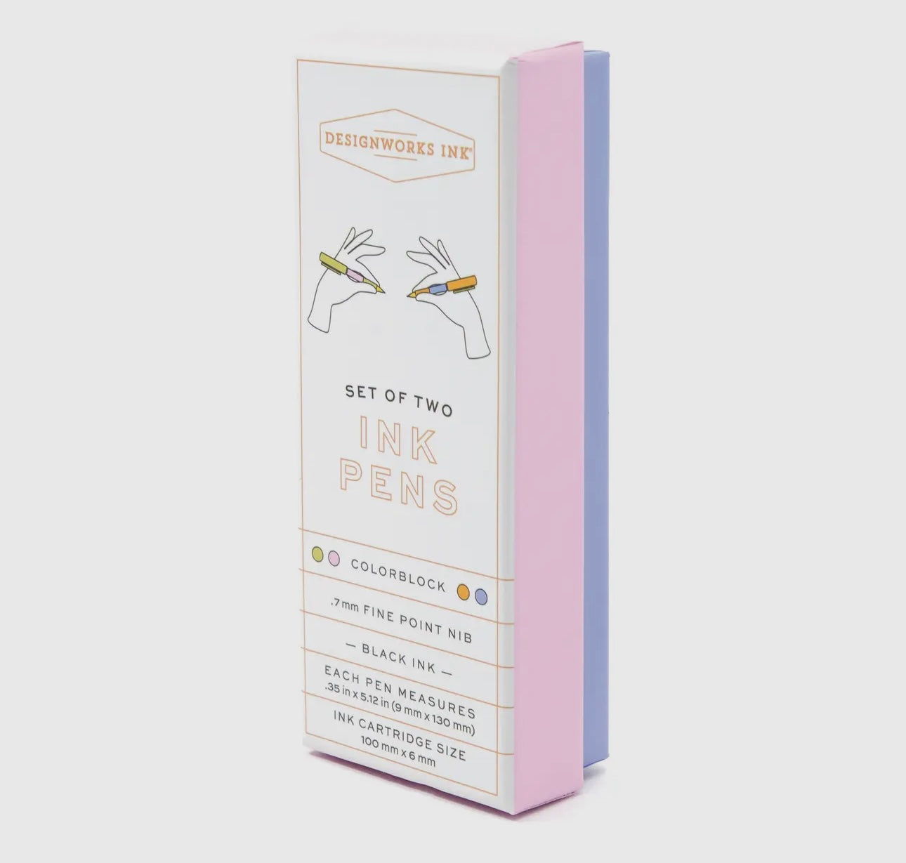 These luxurious matte-finish colour blocked sets of two ink pens are here to help make your mark in style. Each metal ink pen features two colours and is adorned in gold accents with a clip plus an ultra fine ballpoint tip for exceptional writing.