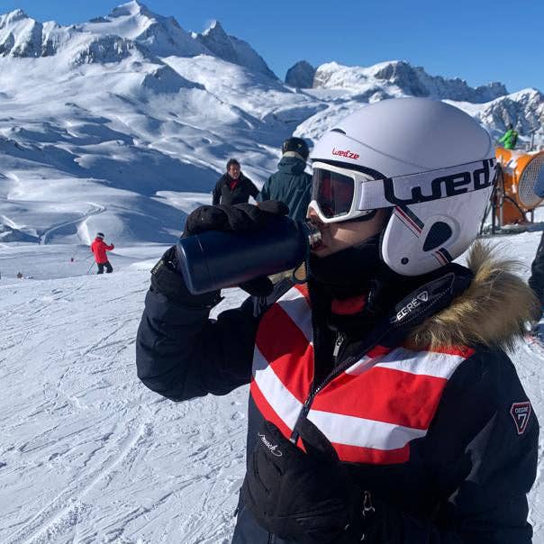 Our 350ml premium reusable bottle in midnight features a luxe, matte finish, and a durable, double-walled stainless steel design. It's vacuum-insulated to keep liquids cold for up to 24 hours and hot for up to 12 hours. Includes a custom silicone strap to carry or clip. Perfect for kids, or to drop in a purse or backpack.