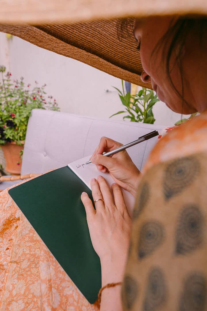 Our beautiful perfect bound A5 sketchbooks are 15cm x 21cm and have 48 blank pages with rounded corners, for your very own sketches, notes, work things, doodles and important life-altering thoughts. The 150gsm paper comes from 100% recycled materials such as hemp and cotton and has a soft, absorbent texture, suitable for pencil, pen and paint. Your sketchbook will arrive with the label tucked inside.